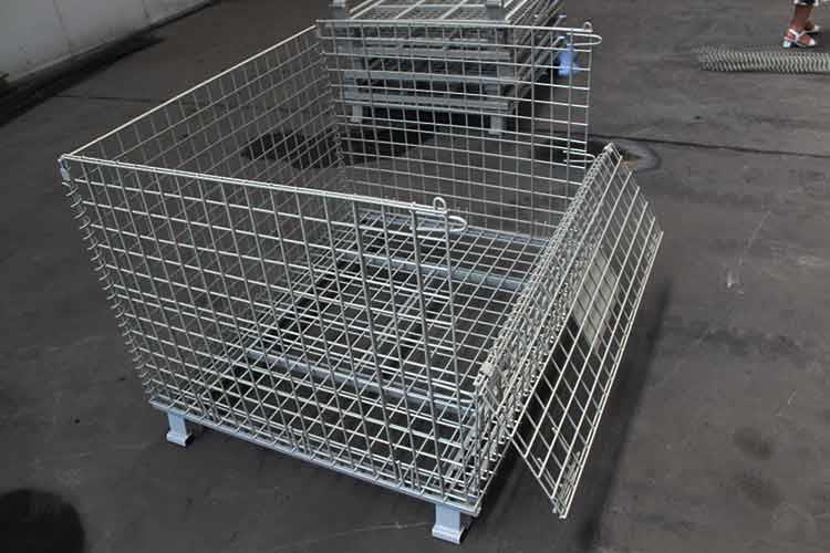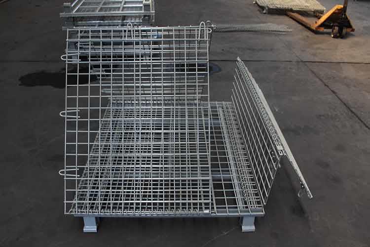 金屬倉庫籠采用螺旋型鉸鏈結(jié)構(gòu)使得倉庫籠在不用時能折疊,以減少占用空間;特殊腳部結(jié)構(gòu),可使金屬倉庫籠自身堆高穩(wěn)定。同時可與各種搬運(yùn)設(shè)備進(jìn)行搬運(yùn),自身可堆垛四層,實現(xiàn)立體化存儲;空籠存放時折疊存放,節(jié)省空間。且表面鍍鋅處理,抗工廠和室外環(huán)境的腐蝕,因此使用壽命長。