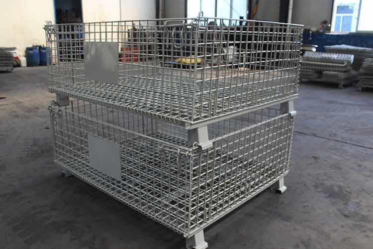 倉(cāng)庫(kù)儲(chǔ)存籠主要原材料是高線拉成的鋼絲,一般絲徑是5mm,6mm,6.4mm。網(wǎng)片焊接的網(wǎng)目間距一般為50×100,100×100,50×50。倉(cāng)儲(chǔ)籠底部采用U型鋼焊接而成,U型鋼是冷軋帶鋼軋機(jī)軋制而成,底部四角采用沖壓件一次沖制而成。鐵絲籠采用Q195高線作為原材料,經(jīng)冷拔成型材。再通過(guò)碰焊形成半成品網(wǎng)片。在制作成網(wǎng)片后,可采用鍍鋅或噴塑進(jìn)行表面處理(鐵絲籠大多數(shù)采用鍍鋅處理),表面處理完畢后就可以進(jìn)行組裝,即可制作成成品。
