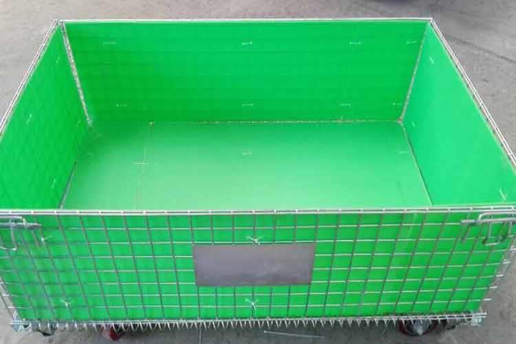 倉(cāng)儲(chǔ)籠主要材料為低碳鐵絲、槽鋼、熱軋鋼板等。倉(cāng)儲(chǔ)籠的外形感覺(jué)輕巧,籠體除底框外皆有鐵絲碰焊成的網(wǎng)片組合而成,網(wǎng)片與網(wǎng)片、網(wǎng)片與底框靠小連接件連接,可活動(dòng)。倉(cāng)儲(chǔ)籠空籠時(shí)可折疊存放,充分利用空間。倉(cāng)儲(chǔ)籠前面可打開(kāi),在堆垛后能取物,堆垛時(shí)承重在側(cè)面的網(wǎng)片上。倉(cāng)儲(chǔ)籠目前已完全具備可堆垛性、可折疊性及可搬運(yùn)性,日益成為物流流通的一種重要的標(biāo)準(zhǔn)物流容器。