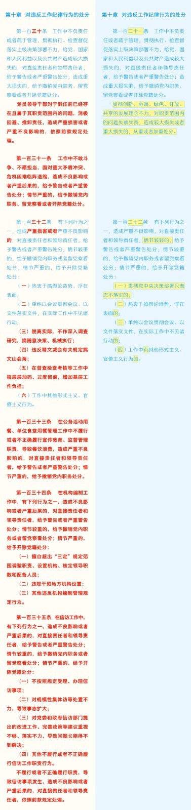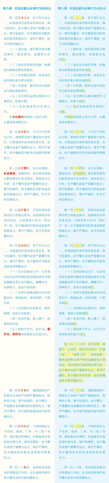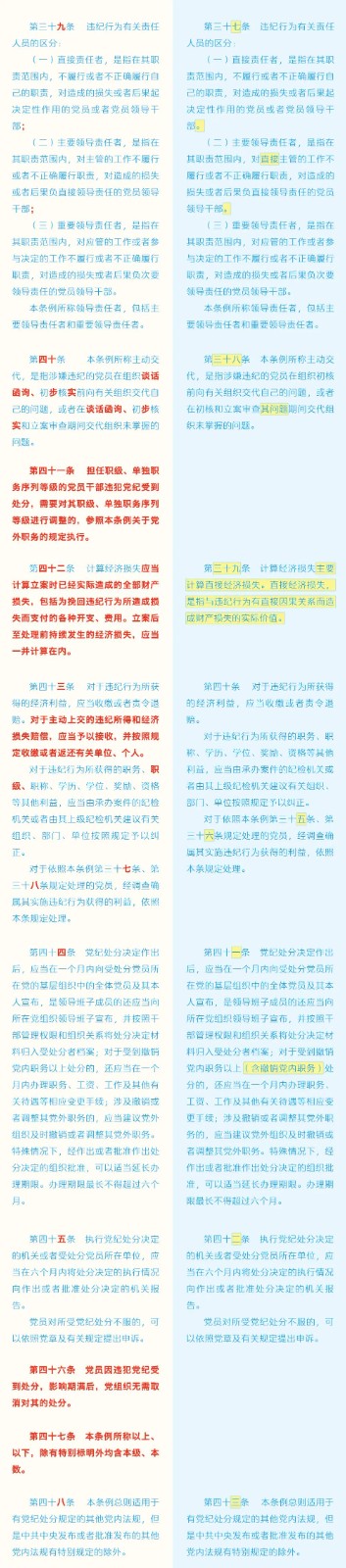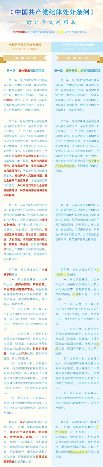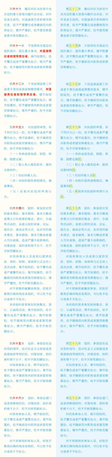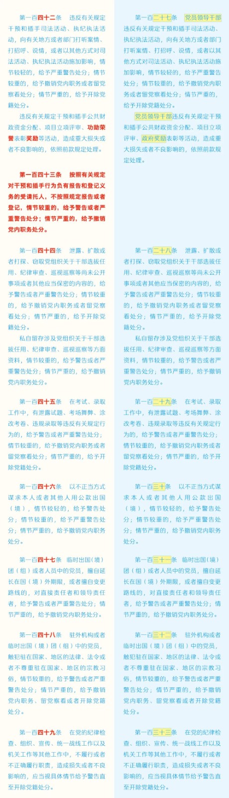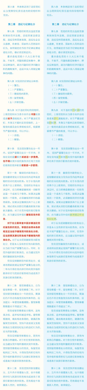 《中國共產(chǎn)黨紀律處分條例》修訂條文對照表